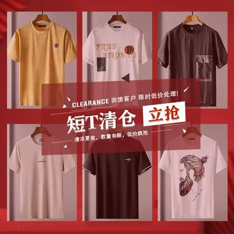 "清仓特价!短袖男纯棉2025夏季新款潮流宽松T恤透气吸汗限时特价